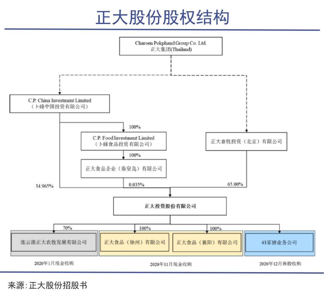 早在2020年底,正大将在华饲料和养殖业务从卜蜂国际中分拆出来,将所持有的43家养猪公司重组为正大股份正大股份(正大投资股份有限公司),于2021年5月递交A股主板上市招股书。中国农牧业潜行40余载的外资巨无霸要上市,一时间业内哗然。有投资者将其比作A股市场另一条金龙鱼。根据《2022年全球养猪企业实力榜》显示,正大2022年母猪存栏115.2万头,高居全球第三,在中国的存栏母猪数约为38万头。不过,相比金龙鱼背后的郭氏家族,谢氏家族的时运有些不济。彼时正值猪价暴跌之际,当年生猪价格连跌5月,均价跌破20元/公斤,部分地区甚至跌破10元。对比年初高位36.7元/公斤,价格已经腰斩。暴涨之后,猪周期的寒冬期即将来临。果然,2021年新希望、牧原股份、正邦科技等业内大玩家都出现了巨幅亏损。正大集团于2020年底逆势筹备上市,谢氏家族的如意算盘是趁此机会大笔募资150亿元,在猪周期新的起点蓄势扩张。当时正大股份生猪出栏量432万头,规模排到了全国第六位。相较来看,牧原股份生猪出栏量为1811.5万头,温氏股份为954.55万头。正大集团中国区资深副董事长白善霖曾透露,公司的目标是在2024年实现出栏2000万头/年的目标。意味着四年要翻四倍。除了战略扩张的需求外,正大股份也亟需补血降负债。财务报告显示,公司资产负债率从2018年末的68.96%攀升到2021年中的70.11%,其中短期借债高达89.44亿元,占总债务比重接近七成。而且,2020年正大股份净利润高达75.71亿元,是两年前的108倍。业绩波动如此剧烈,谢家人好不容易赶上一波黄金牛市,便想借此机会登陆资本市场,估个好价钱。但监管层显然对此非常警觉。在其更新招股书后,证监会下发了一份长达23页共1.8万字的反馈意见,涉及业绩可持续性、信披、资产重组、会计资料等等层面。而时至当下,仍未查询到正大股份及其保荐机构的回复稿,谢氏家族首个A股IPO的梦想实际上已经搁浅。其实从意见稿和招股书中,可以明显的发现,正大股份是一个极为仓促的“大拼盘”。为了赶上猪周期的“末班车”,谢氏家族腾挪资产,通过发行股份的方式以281.4亿元收购关联方正大畜牧投旗下43家公司股权,成立正大股份。收购完成后,正大畜牧投资、卜蜂中国分别持股65%、35%。但收购的过程却是问题重重,仔细梳理,可以发现,公司一手高价收购大股东旗下亏损企业;另一手却转让、注销违规违法或官司缠身的企业。而且,公司与股东正大集团等公司之间存在频繁的关联交易,正大集团既是大客户也是大供应商。正大集团在实业领域积累了诸多名誉,且被看做中国畜牧业的领路人,但正大股份上市之路掩盖不住其趁机收割的投机和贪婪。上市搁浅后,正大股份2021年净利润仅有5亿元,同比暴跌了93%。