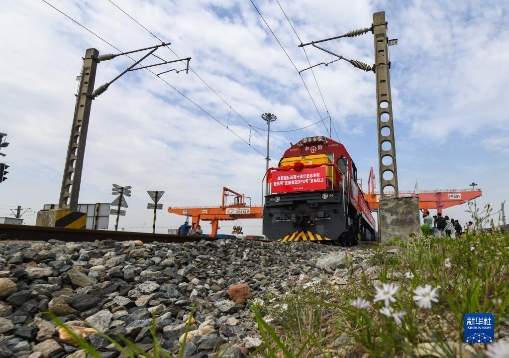 当日,满载小家电、数码产品、定制服装等跨境电商货物的成都国际班列十周年纪念专列暨首列“法国邮政DPD号” 在成都国际铁路港发车。据了解,该趟班列是法国邮政DPD公司首次使用中欧班列进行长途运输,预计将于半个月内运抵欧洲各地。
